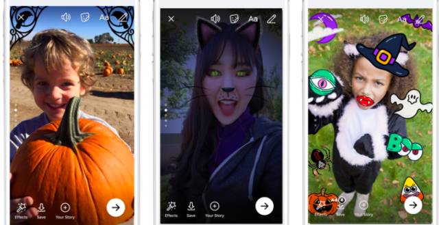 当然,今年 Facebook 早就针对万圣节推出了多种万圣节主题的面具和框架,无论是用 Facebook Live、Messenger、或者照相机,用户都可以随便给自己添加个小胡须啦,或者猫耳朵什么的。