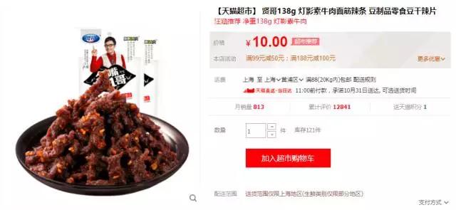 我们以天猫上一款贤哥冠名的辣条为例。
