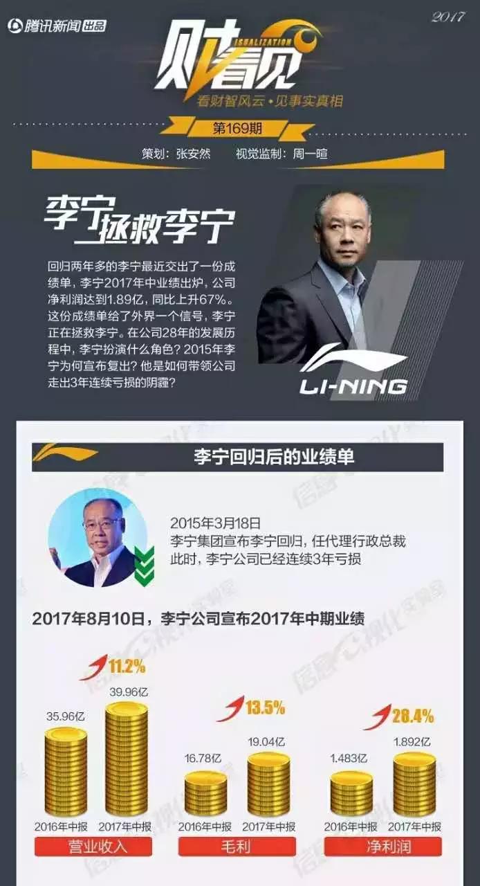 三年亏损31亿元的往事已如云烟,随着2014年年底创始人李宁的回归,这家曾为中国本土第一大运动品牌的公司正加速复苏。2017上半年,李宁公司营收近40亿元,盈利1.89亿元。