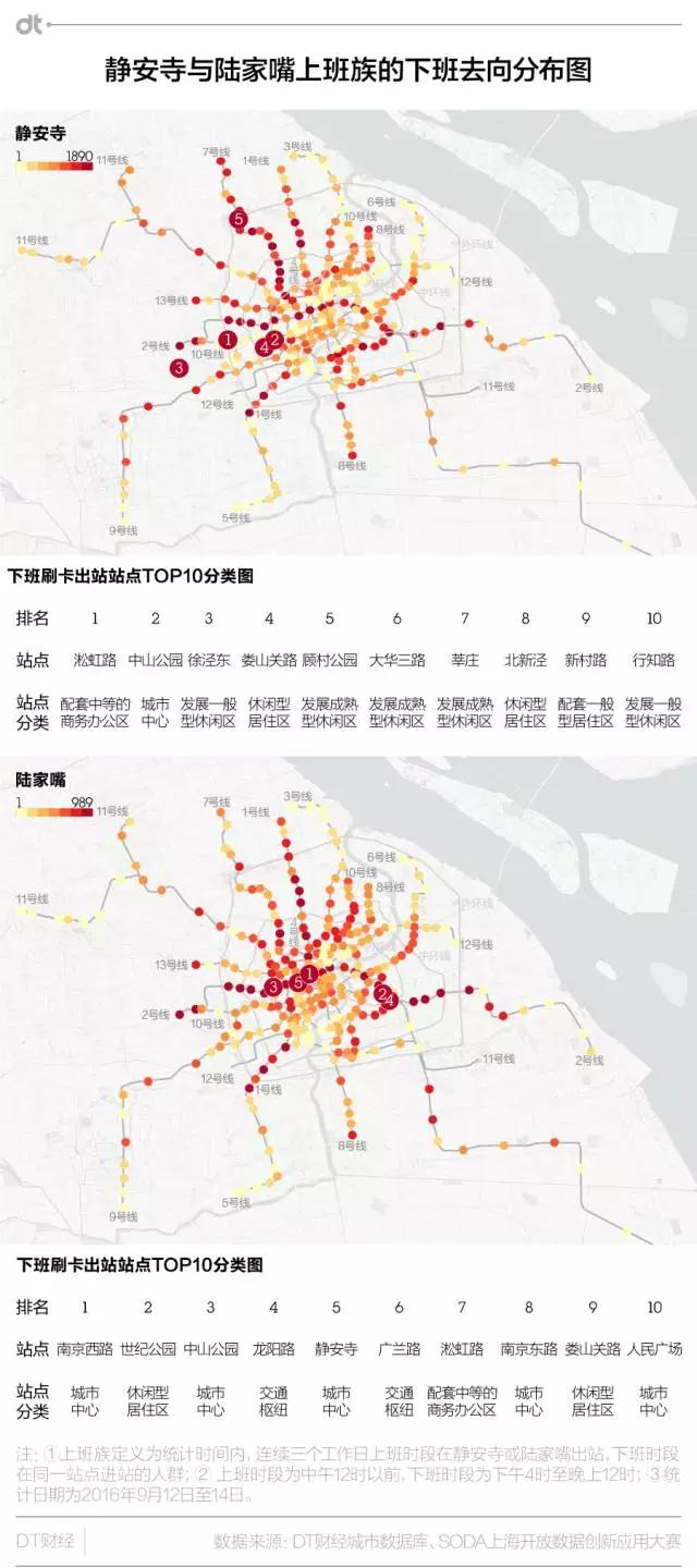 (DT君注:上班族定义为连续三个工作日在静安寺或陆家嘴中午12点前刷卡出站,下午4点后刷卡进站的地铁乘客。由于数据不完备,没有选择五个连续的工作日。)