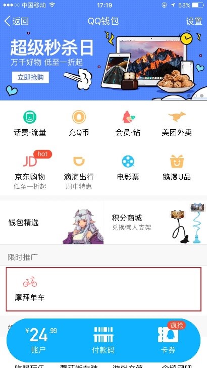 摩拜单车接入QQ扫码秒解锁,还发起了免押金和送月卡活动