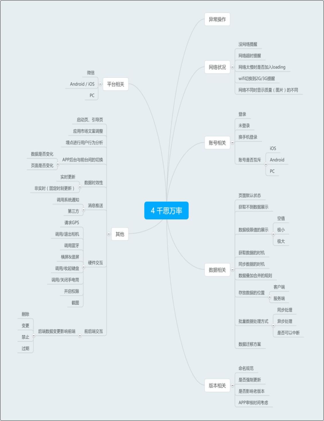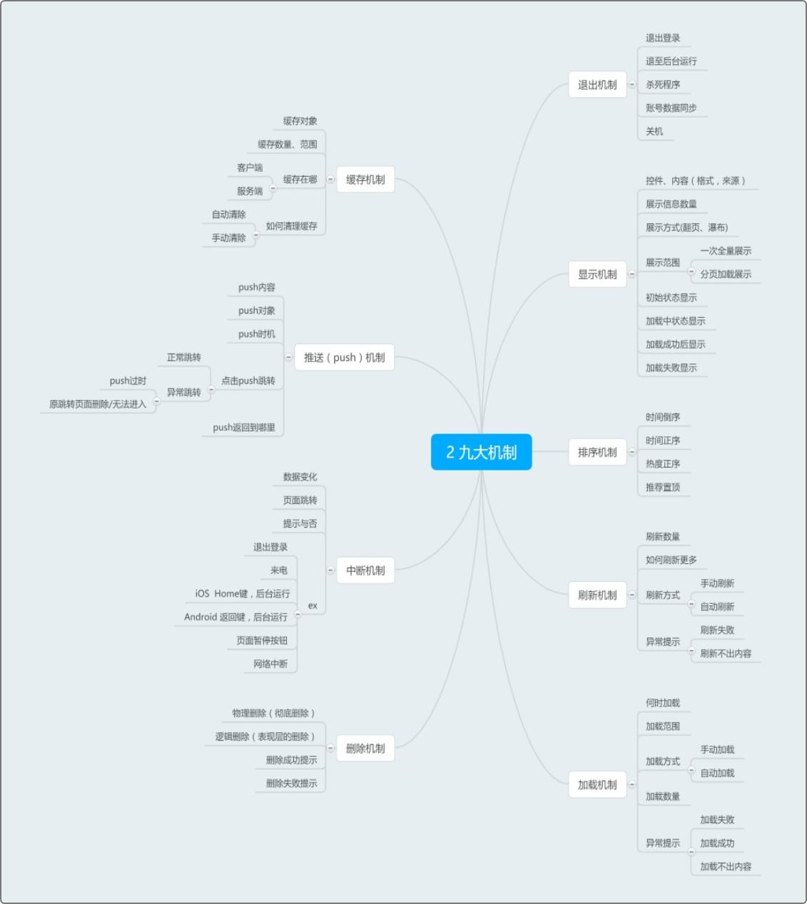其他部分可能遇到的比较少,但是基于PRD考虑的越全面越好的格调,了解下也是不错的,如果需要完整的脑图或者有补充的可以给我留言。