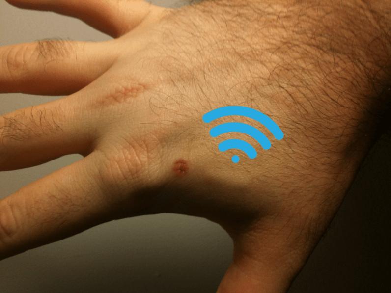志愿者表示,在植入时会有一种穿刺或滴灌的感觉。植入的部位在拇指和食指之间。