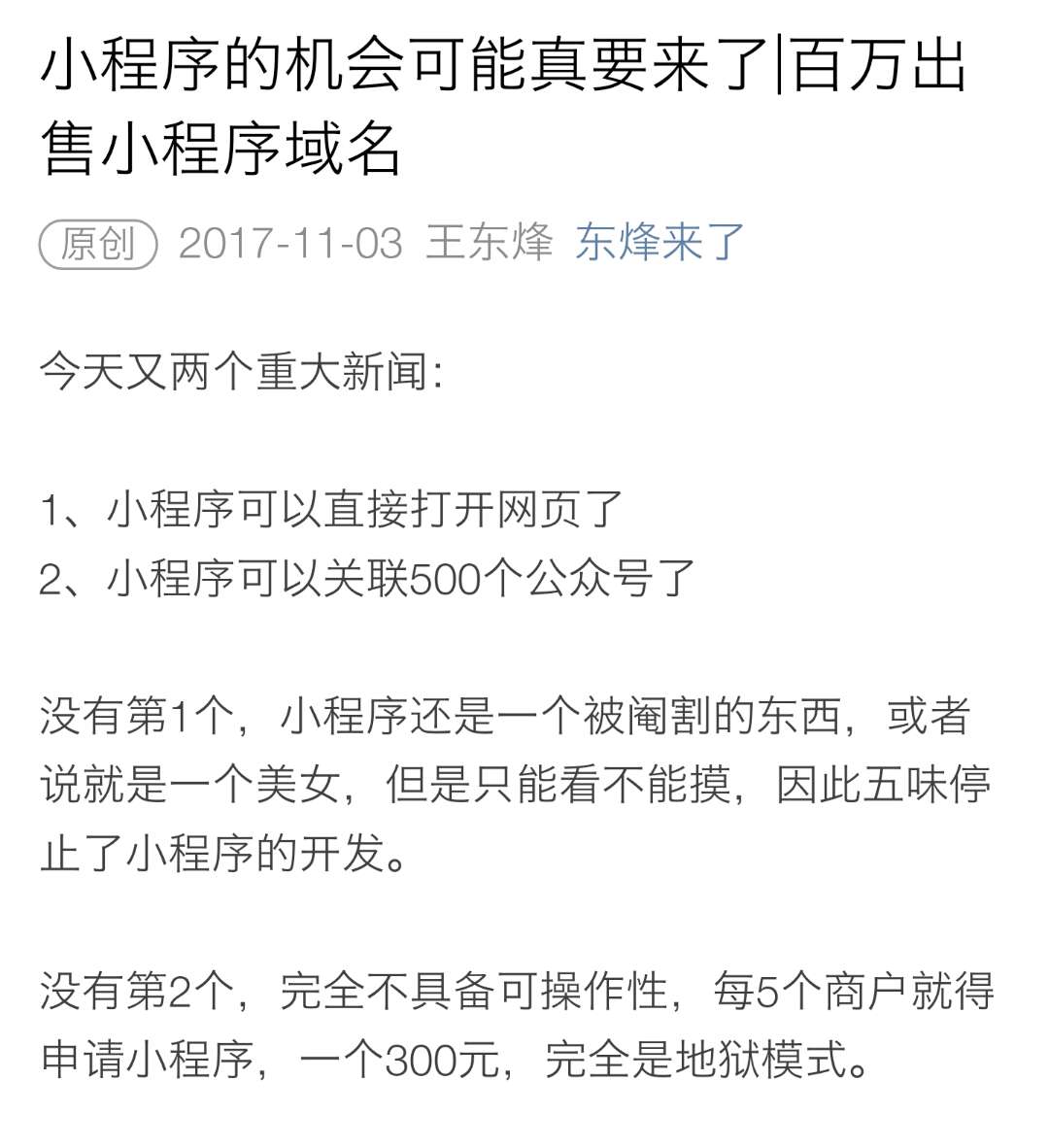 「小程序谈资」11月3日