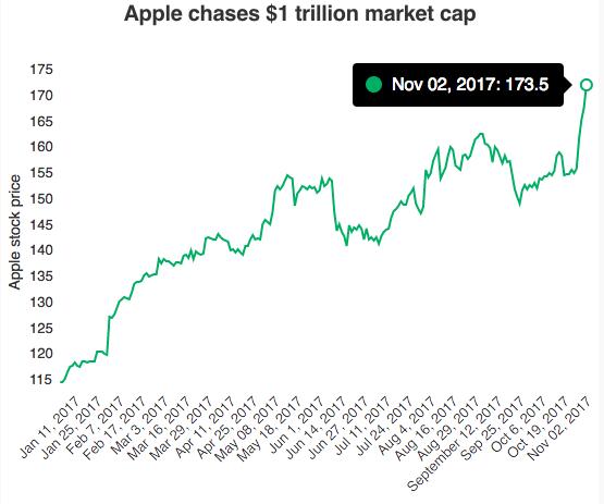 在苹果财报发布几个小时后,苹果股价的上涨幅度达到3%左右,使得公司的市值短暂的登顶9000亿美元。这距离苹果市值过1万亿美元还远吗?