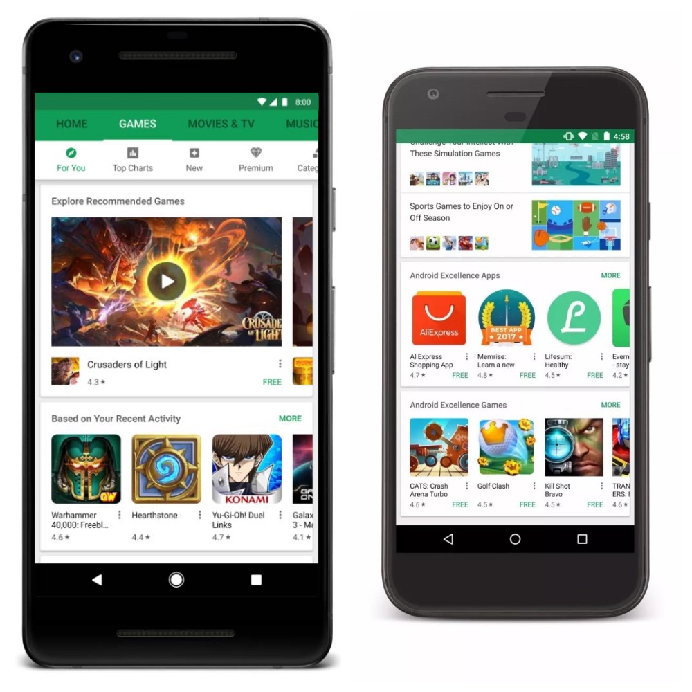 Google 希望开发者们更加了解 Google Play 平台上的新变化——Google Play 正在强化展示位设计以及编辑推荐内容。在改进版的游戏主页中,Google Play 还会推出两个新的浏览选项,分别是 「New」(针对即将发售的游戏和热门游戏)和 「Premium」(针对付费游戏)。