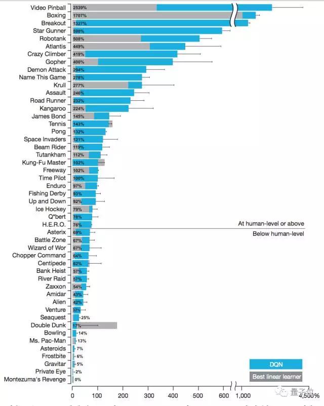 比如说Video Pinball、Boxing、打砖块(Breakout)、Star Gunner、Robotank等等,AI都很擅长。
