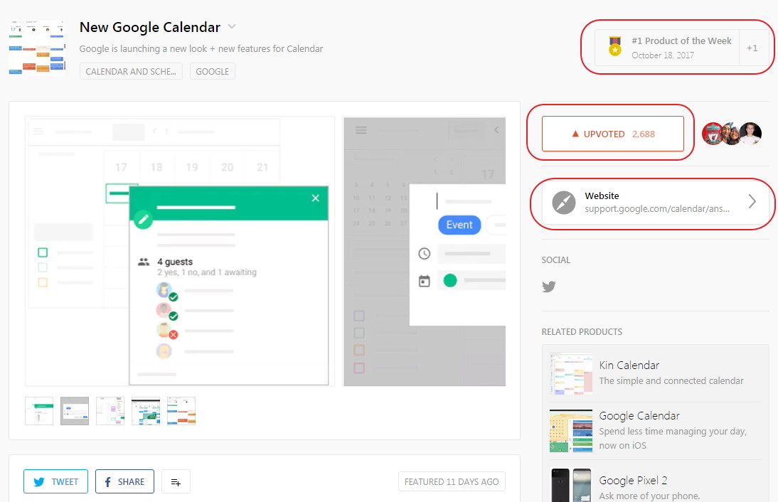 其他。PH 在九月迎来 4.0 改版之后,产品页面中增加了不少帮助用户发现好产品的小细节。一是 Badges 徽章表彰每日排名前四位的产品,找到更受欢迎的产品。二是产品页面开发者发布或者产品评论会被单独用 MAKER 标签标注出来。三是改进产品链接,新版在产品的外链中新添加了产品本身官网或者 App Store/Google Play 下载链接(如果有移动客户端的话)。