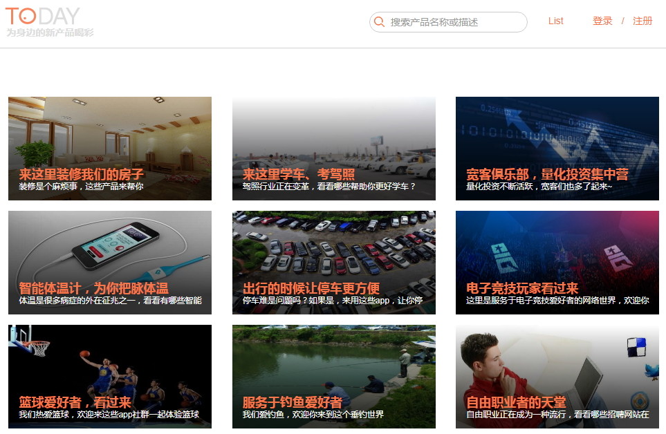 值得推荐的是 Today List 新产品合辑,以具体的需求整理成各种新产品的合辑列表 。