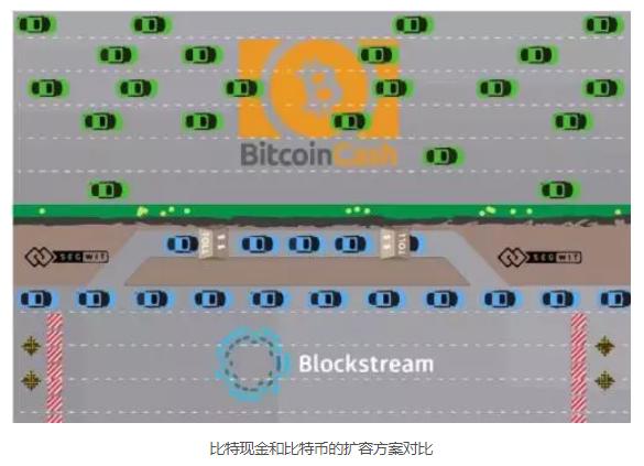 第二类,我们简单地称其为闪电网络派,主张用闪电网络解决拥堵问题,也就是不对马路本身进行扩建(不动比特币主链,仍然让比特币保持1M的区块大小),而是在原有的马路上方架一条高架桥(闪电网络),专门供自行车(小额高频交易)使用,主路里的其他车辆(大额交易)就可以快速地通行了。但是闪电网络最好建立在隔离见证的基础上,隔离见证就是原来的车上路都需要载两类东西,一类是交易信息,一类是见证信息,后来发现见证信息并不是很必要,就把见证信息隔离出来不上马路了,走其他通道,这样每辆车的体型可以从SUV缩小到Smart,这样也能容纳更多的车了。