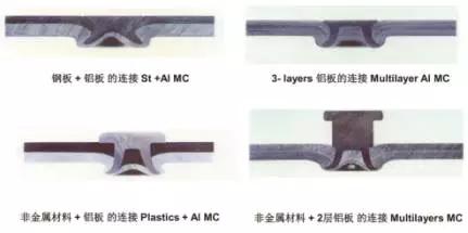 那么铝合金在汽车行业的爆发究竟给我们带来了哪些投资机会,首先以铝合金轻量化部件为主营的公司的确是最大受益者,那么产业链上游的铝业公司是否也值得我们关注呢,诚然铝合金会为这些公司带来增量,但站在一级市场角度铝业公司本身的营收规模较大(挪威海德鲁2016年营收697亿元,Arconic2016年营收830亿元,中国铝业2016年营收1440亿元)汽车用铝合金的增长带来的边际效应有限,因此我们不妨关注一些产业链上小的环节,因为铝合金的用量增加而带来颠覆性变革的领域,这一块能产生的边际效益最高,其中最典型的环节就是围绕铝焊接为核心的工艺方案提供商,焊接设备制造商等,因为铝合金材料的大量应用首先带来的就是不同形态材料之间的连接工艺问题,板材,型材,铸造件,同时还有不同材料之间如钢铝,镁铝等的连接。下图为各种不同材料与铝板的连接: