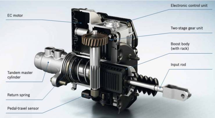 EHB可以分为两种,一种是带高压蓄能器的,通常叫湿式。另一种是电机直接推动主缸活塞的,通常叫干式。混动型新能源车基本都是前者,后者的典型代表就是博世iBooster。