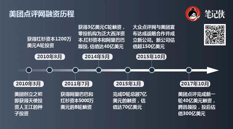 2017年10月19日,美团点评完成新一轮40亿美元融资,投后估值300亿美元。