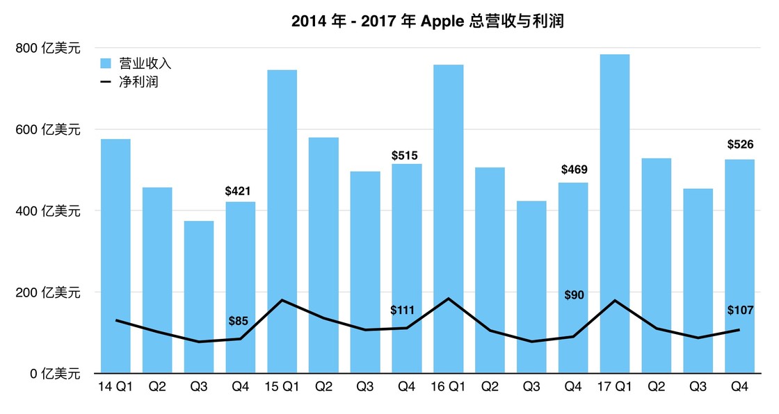 即使没算上刚发售的 iPhone X,苹果 2017 Q4 的财报也很亮眼