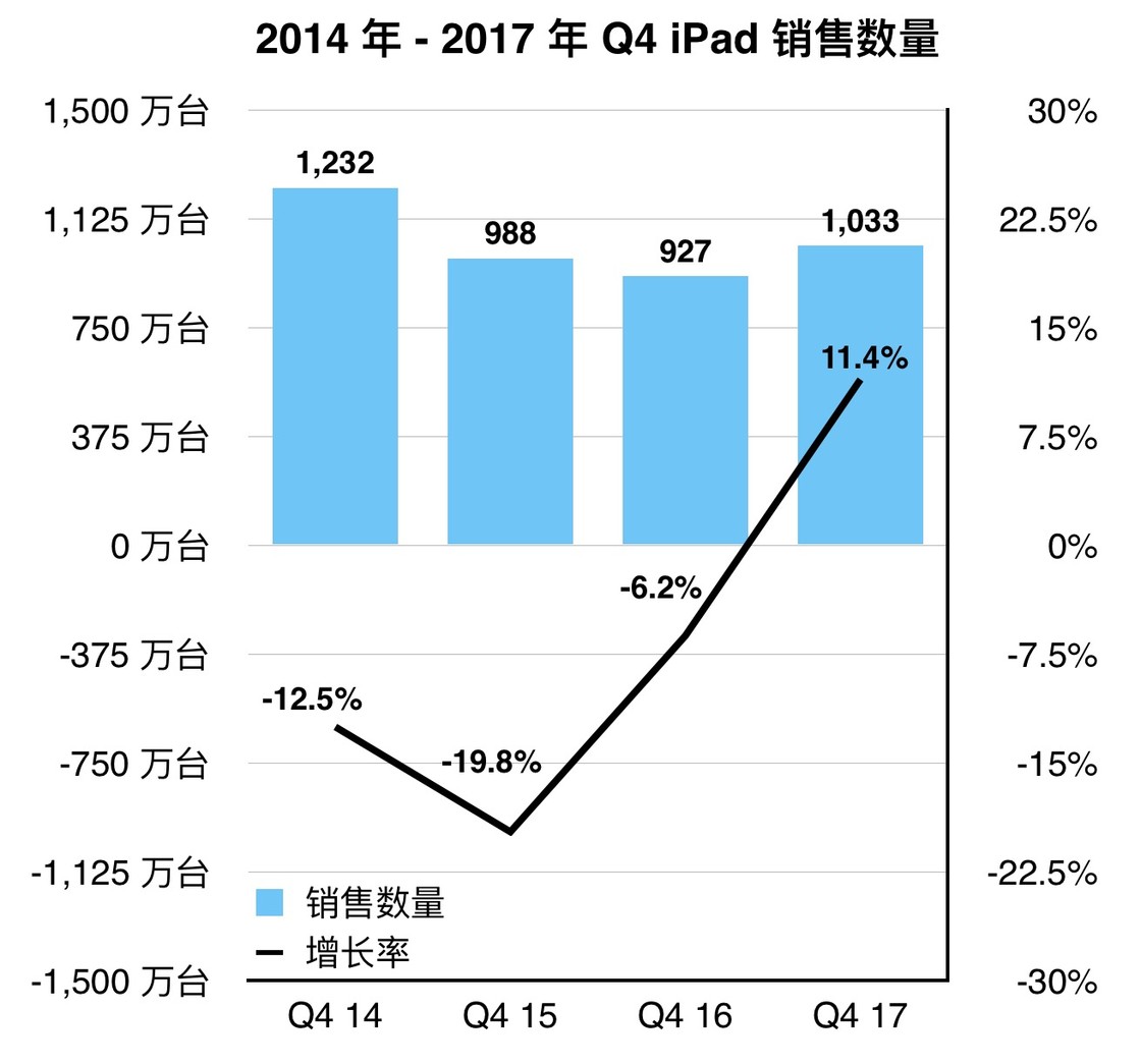 关联阅读:《苹果 2017 Q3 财报:iPad 多卖了 14.8%,但 iPad Pro 贡献不大》