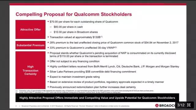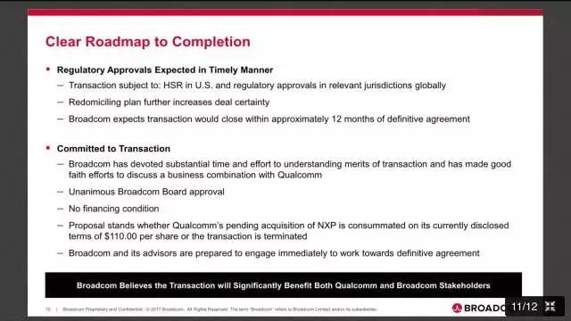 博通在周一的声明中表示,无论高通收购NXP交易以低于目前每股110美元的价格结束,或者交易终止,都会收购高通。