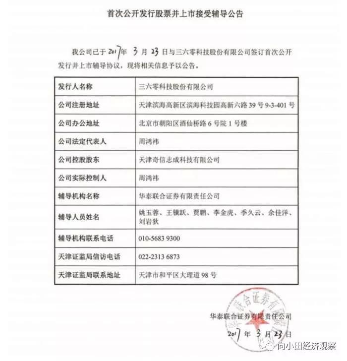 第一个动作很关键。360自私有化开始,我就密切关注其投行是哪家。很早网上就传出,是华泰联合证券来做360项目。到3月份,天津市证监局还挂出一个辅导公告(如图),指出华泰联合证券是360项目IPO的辅导券商。