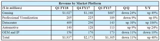 特别是2018年第一财季,这项业务同比增长了186%,占总营收的20%。