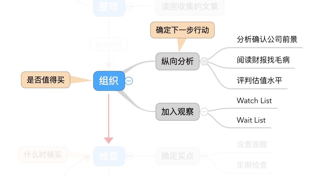 整理阶段应该确定「是否值得研究」。如果值得,理所应当的进入下一环节「组织」,建立对应项目;如果不值得,Pass,等着收集下一家公司。