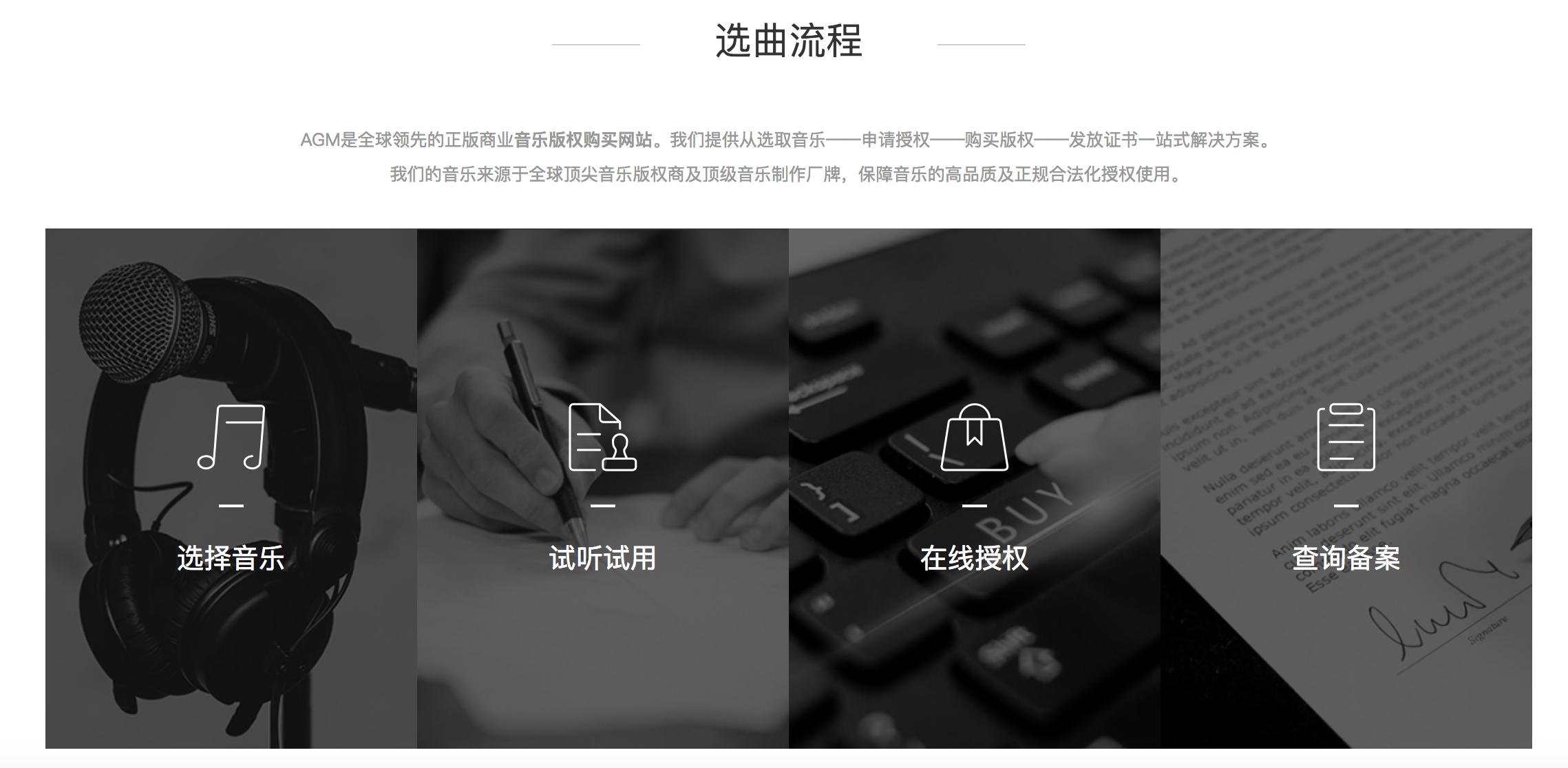 在AGM库中,用户能够看到精准的授权信息,勾选音乐的使用的方式、时间等信息,并有长期使用的折扣,可以直接在线支付并获得授权码,并在第三方随时查询授权信息。过程简单便捷,与视觉中国线上图库使用方式类似。嗨翻屋也会以API接口的形式为企业提供定制服务。