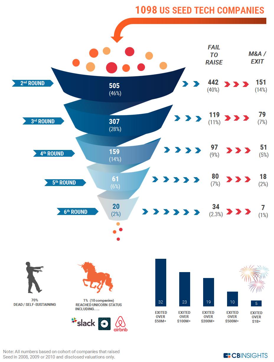 这群人融到了A轮资金,但是无法融入更多资金,也未能成功退出。平均来说,这些人要花53个月建设企业,但最终只能勉强度日。