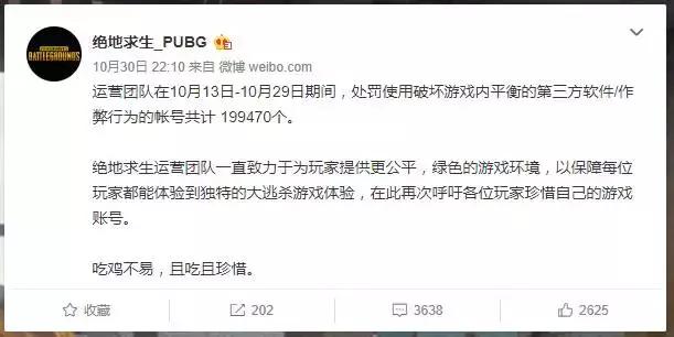 不可否认,目前《绝地求生》存在两大弊病:一是稳定性不佳,二是外挂猖獗。这两点从国服官微发布的内容就可以看出——不是在为服务器宕机道歉,就是在表态严打外挂。但即便如此,《绝地求生》的销量依然坚挺。