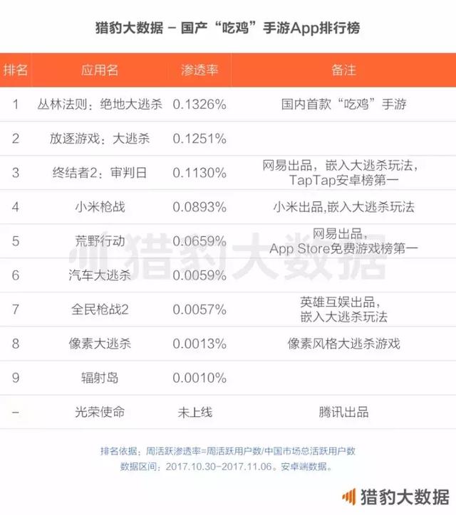 1.排行榜的排名依据为周活跃用户渗透率;只适用于安卓平台;