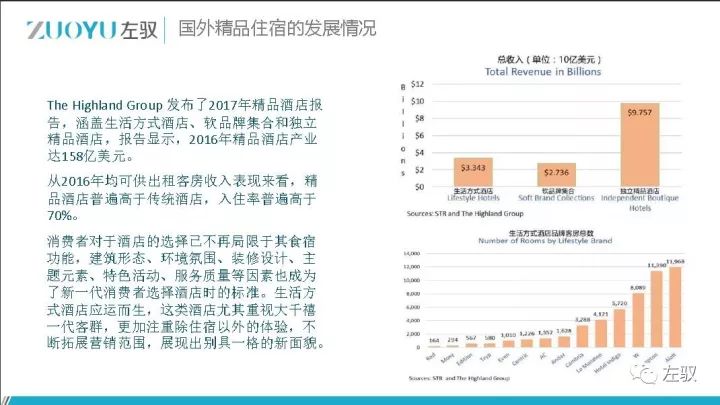 对标国外精品住宿行业的数据可以更好的预估国内精品住宿行业未来的发展。如上图所示,国外精品酒店发展相对来说比较成熟,有大量的小型精品酒店实现了产业化,可供出租房收入和入住率普遍高于普通酒店。