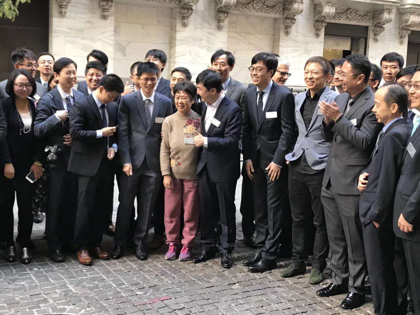 王小川、张朝阳等一行人在纽交所前合影: