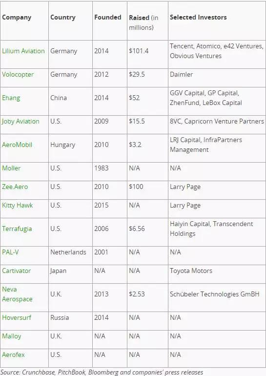 飞行汽车生态系统正在成熟。目前已经有15家创业公司在研发不同的飞行汽车概念(包括悬浮式自行车),而且更多的公司依然处于地下模式或早期阶段。此外,空客和丰田等多家重量级公司也在开发这项技术。