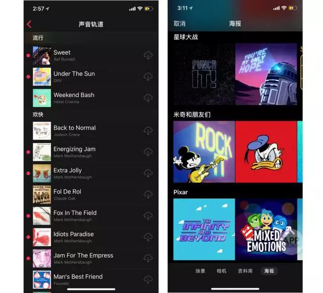 在「贴纸」里,我们可以添加皮克斯、迪士尼、星球大战里的角色贴纸,真爱粉们不要错过啦。