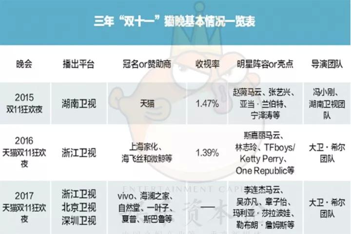 去年,“天猫双十一晚会”的操盘手、阿里鱼总经理应宏曾告诉娱乐资本论,纵使上海家化1亿冠名,依旧不赚钱:“我们还处于投入期,要等到明年后年才会考虑营收的管理和预期。”