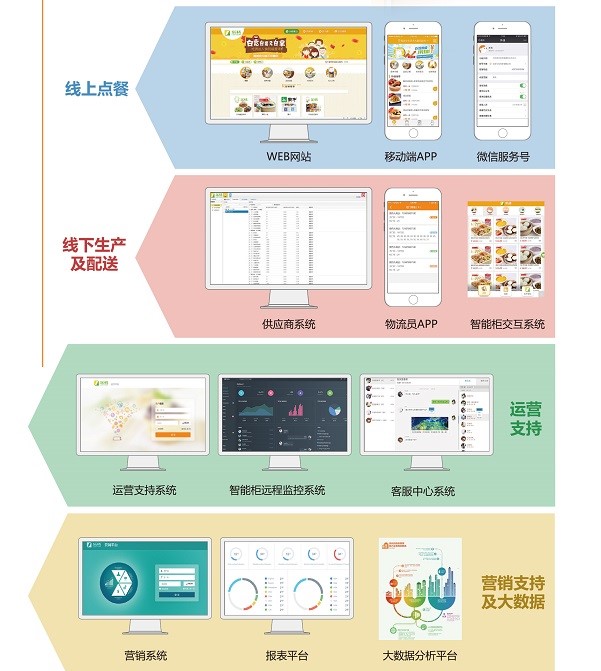 创始人兼CEO邹广伟告诉36氪,发展至今,各模块的技术已打磨成熟,加之自动售卖机渠道蓄势待发(后文具体展开),遂将平台向全行业开放,为各类自动售货机提供一站式解决方案,涉及智能售卖机管理系统、跨平台售货机交互系统、库存ERP系统、运营客服系统等、会员系统及营销系统、运维人员系统、移动端商城等。