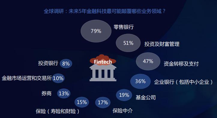 朱立强分享的一份普华永道的报告显示,未来五年,被金融科技影响最大的,是零售银行,然后是保险和基金。零售银行也许是金融业里面最接地气的生意,其赖以生存之处在于客户关系。互联网“普惠”特性往往比银行更具有这个优势,互联网公司更能用低成本的方式触达用户。最终的结果是,所有有场景的互联网公司,都开始做金融,巨头们开起了基金超市、贷款超市和保险超市。