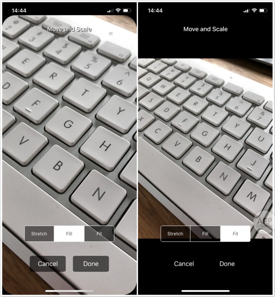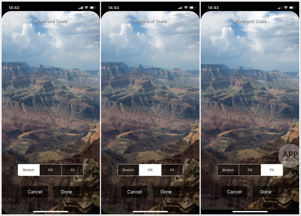 无论是系统自带壁纸,自定义图片,确认选择后,用户可以通过 Adjust 选择拉伸、填充、居中自适应三种显示效果。对于用户日常通过相机拍摄所得的非 18:9 比例图片,推荐选择中间的「填充」方式进行使用。