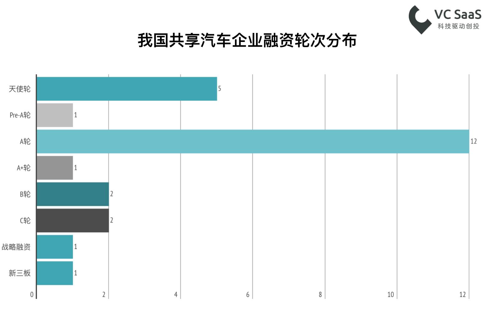 超过一半的企业都处于A轮以前的融资阶段,且数量较少。说明我国共享汽车领域还十分具有潜力。