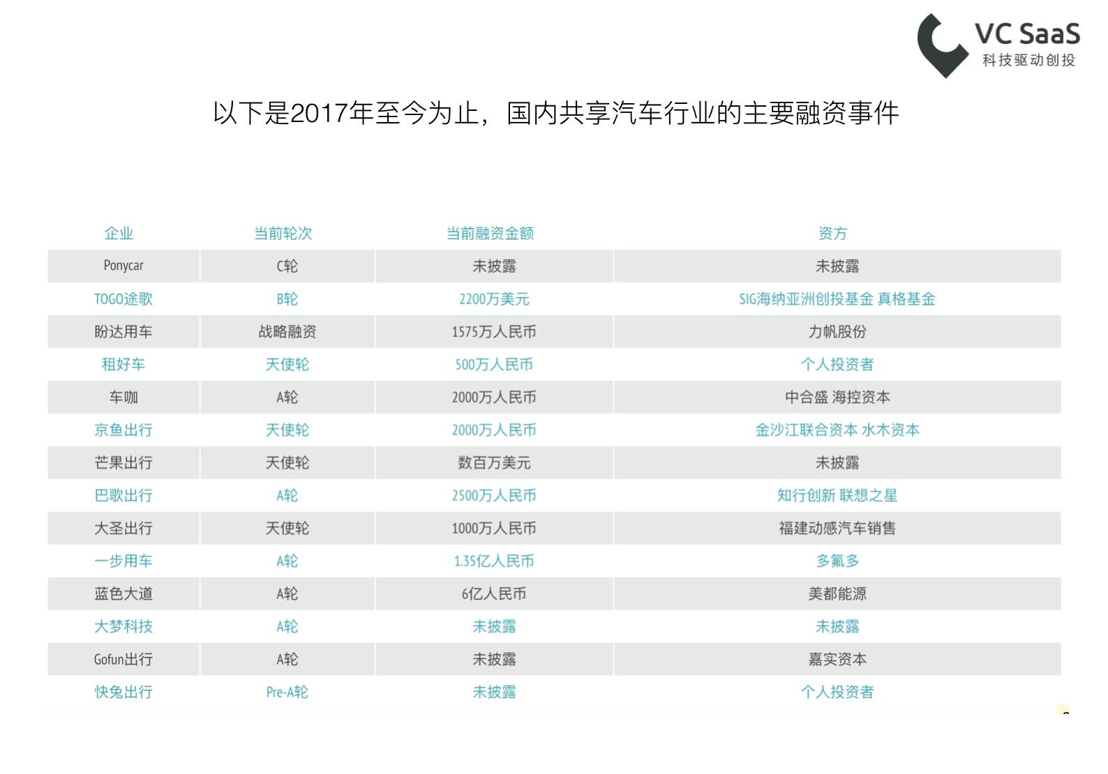我国共享汽车领域热门投资机构