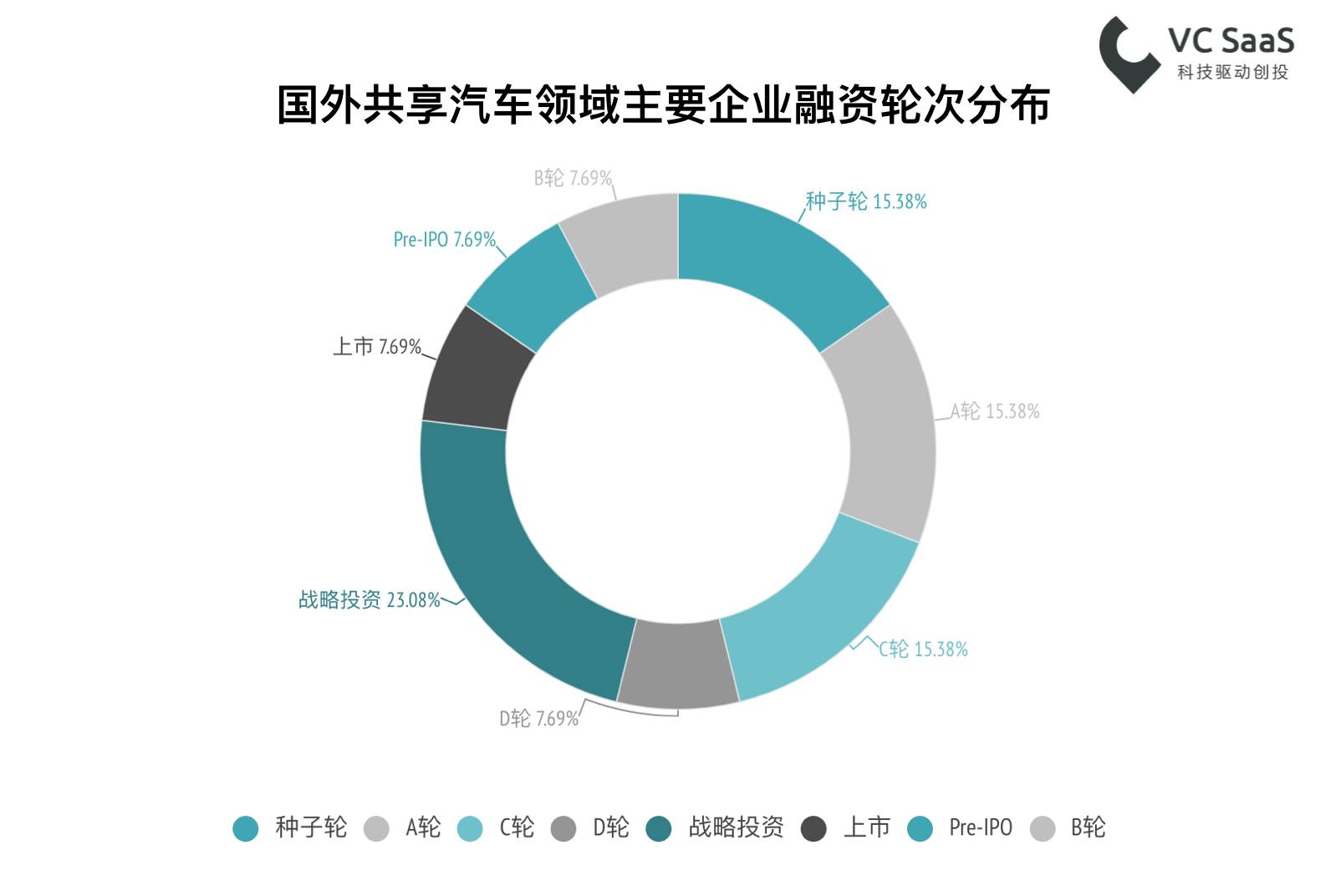 国外共享汽车领域企业的融资阶段分布比较平均,可以看出发展态势比较健康。