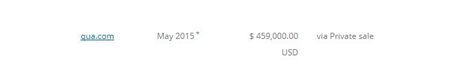 而2014年10月,阿里旗下的 “淘宝旅行”升级为全新独立品牌“去啊”, 并启用新域名Alitrip.com上线。而据易名中国报道,阿里的 “去啊” 旅游品牌推出当天,Qua.com的域名就被域名投资人航伟高价拿下了。不久之后,Qua.com域名于2014年11月被去哪儿收购,并且作为去哪儿旗下国际机票网站启用,建立海外子品牌。然而这并没有结束,公开记录显示:2015年五月,Qua.com域名在海外以45.90万美元的价格被再次交易。