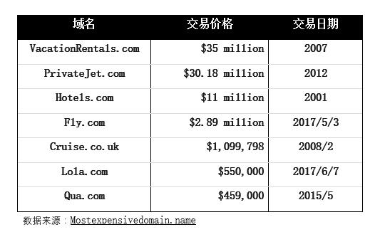 环球旅讯通过整理最近10年的公开披露资料,获悉如下的旅游相关的域名交易排行榜(鉴于公开资料有限,以下榜单为不完全统计):