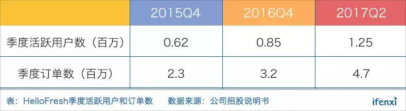 HelloFresh成立于2011年,于2017年11月2日在法兰克福交易所上市,最新市值15亿欧元。立足美国的Blue Apron,于2017年6月30日纽交所上市,受运营数据不理想和Amazon收购Whole Foods的影响,最新市值只有6亿美元。