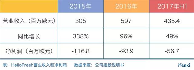 HelloFresh收入一直处于快速增长通道,2012年至2015年,年复合增长率达到410%, 2017年预计收入为9亿欧元。