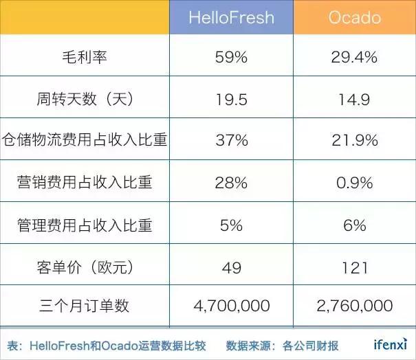 首先,和市场中其他优秀的生鲜零售商相比较,HelloFresh毛利率水平已经处于高位。国内永辉超市毛利率为20%,美国有机食品超市Whole Foods毛利率为34%,英国电商超市Ocado毛利率为29.4%。