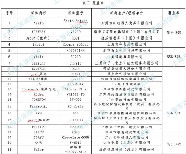 上海市消保委官网介绍称,本次比较试验主要通过线上综合电商平台以及线下大型百货商场和家电卖场等渠道购买了25件智能扫地机器人样品(线上17件,线下8件),涉及包括iRobot、科沃斯、戴森、米家等在内的25个品牌,价格在1088元-7999元不等,基本涵盖了市场上的主流品牌及型号。