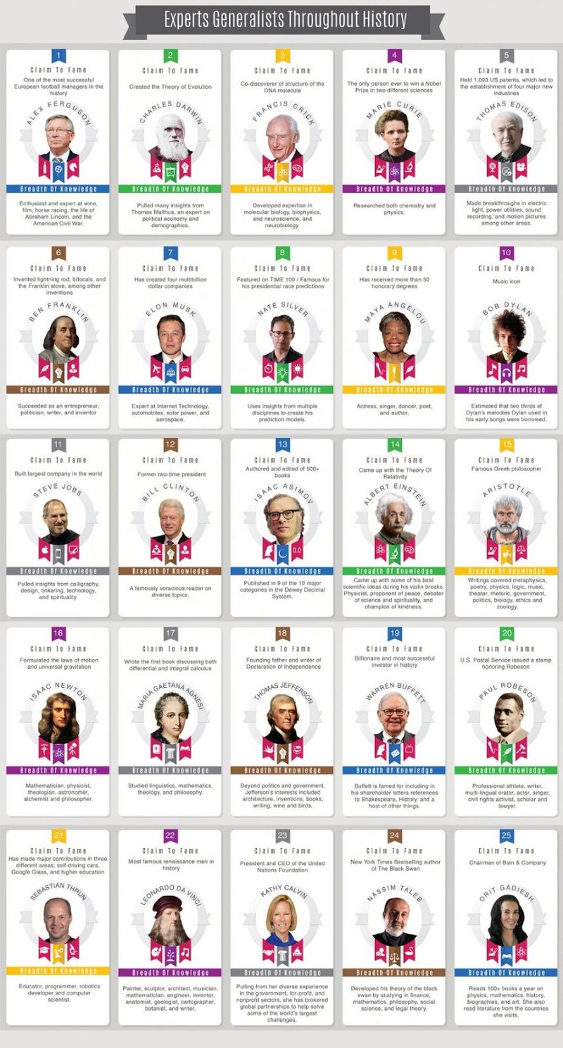 下面这种图中展示的是历史上最优秀的25位顶尖的专家型通才: