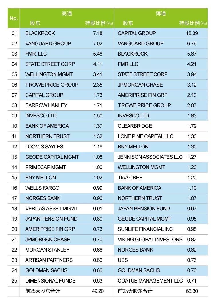 高通与博通的前25个大股东中有17家重合(图片来源:DeepTech深科技)