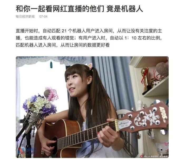 拿之前风口上的移动直播举例,去年“直播间里除了你全是机器人”的新闻引发了不小的行业震动。直播公司和演艺经纪公司合谋给观众制造繁荣假象,从而骗取用户打赏的行为,已经成为这个行业不公开的秘密。可普通大众,也许并不知道。