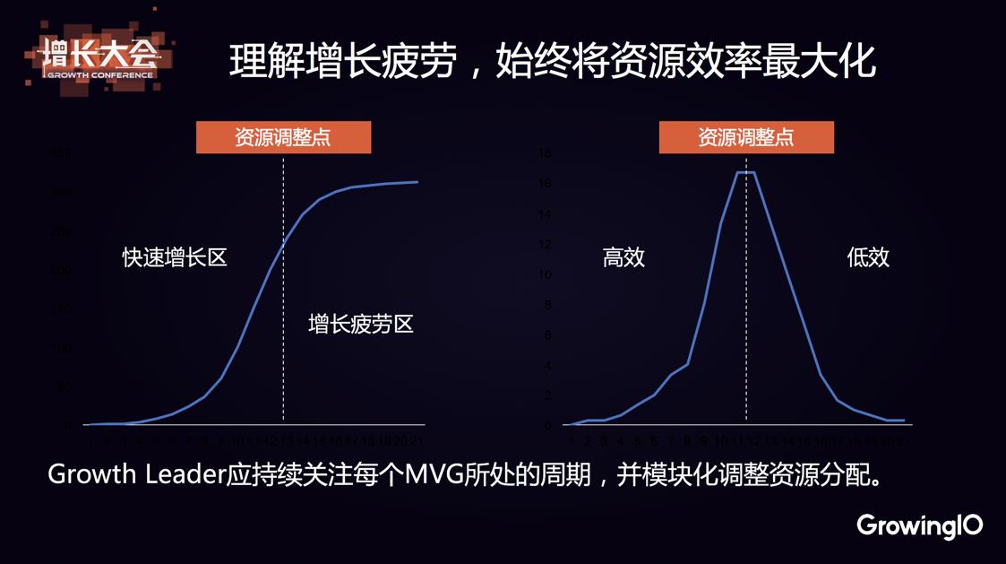 作为 Growth Leader,一定要做到以周为单位,高效地识别每个 MVG 的增长瓶颈,然后迅速调整资源,做到效率最大化。我们每两三周就会帮增长团队调整 MVG,让他们始终保持在高效增长的状态。