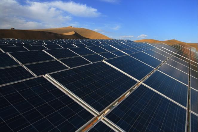 比亚迪太阳能板在沙漠铺开