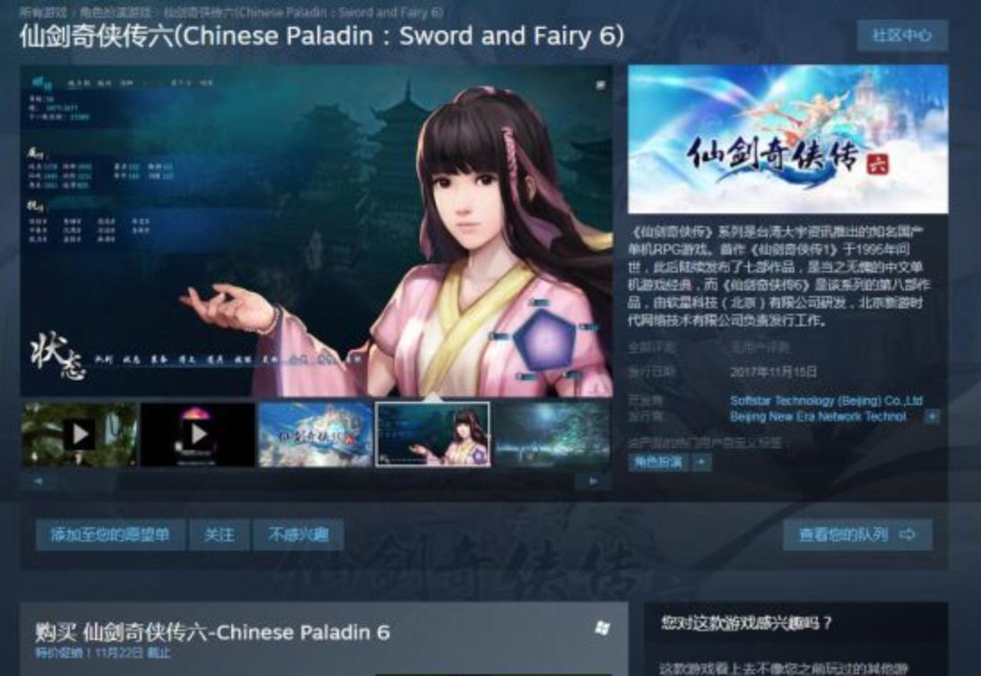 继《仙剑四》、《仙剑五》、《仙剑五前传》之后,今天《仙剑六》也在Steam商店开放销售,售价60元,海外版售价为14.99美元。《仙剑奇侠传六》是仙剑系列的第八部作品,由软星科技(北京)有限公司研发,北京新游时代网络技术有限公司负责发行工作。游戏采用双战斗系统,即兼顾即时、回合两种模式,且两种模式可自由切换,玩家可以随时选择自己喜欢的战斗方式。为丰富玩家的游戏体验,此版《仙6》添加了Steam成就,未来还将推出集换式卡牌系统。